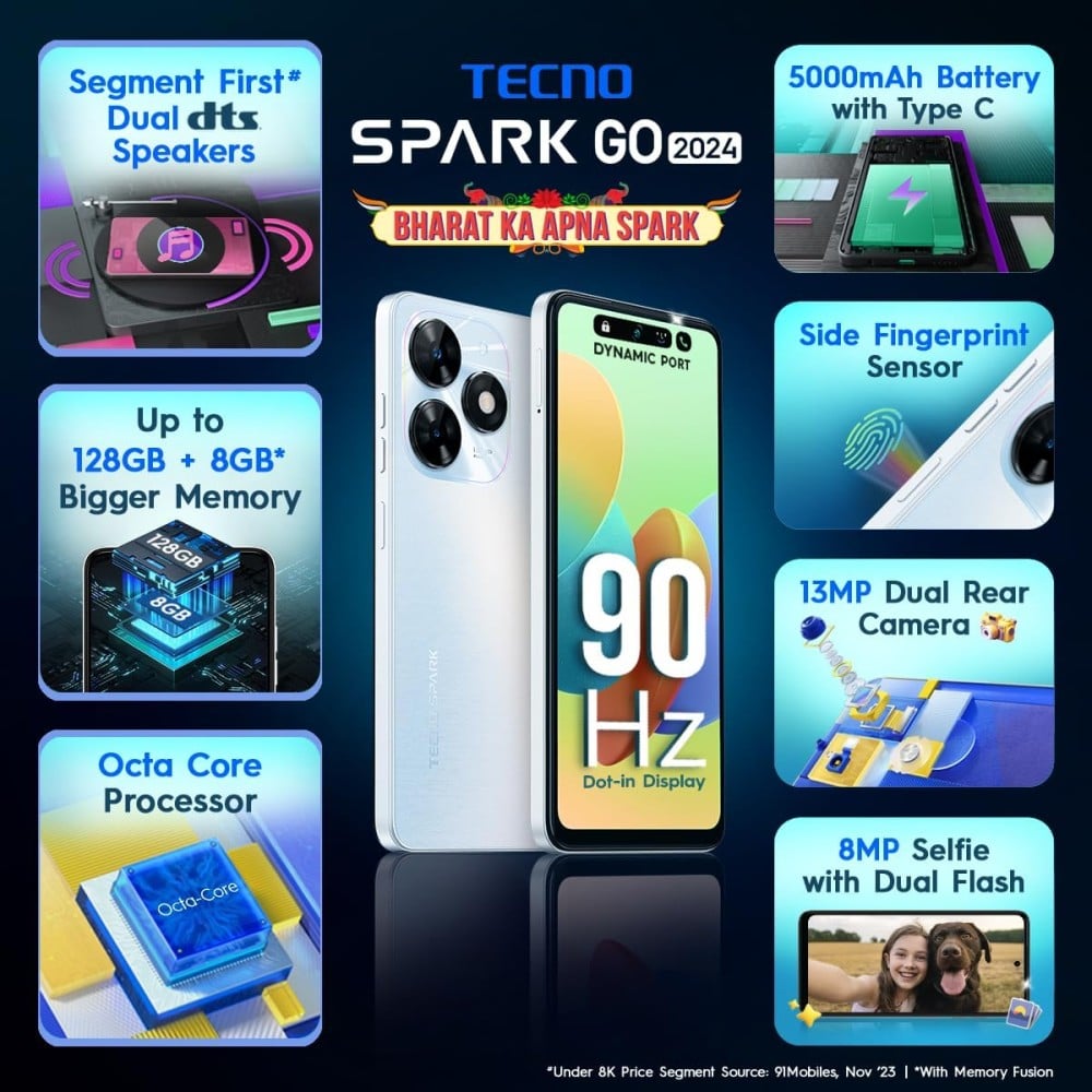 تكنو سبارك جو 2024 128 جيجابايت / 4 جيجابايت رام 4G - أبيض