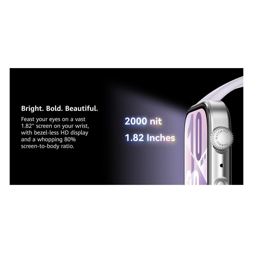تأتي الساعة بشاشة AMOLED مستطيلة بحجم 1.82 بوصة ودقة 480 × 408 بكسل، مما يوفر عرضًا واضحًا وحيويًا للمحتوى.
