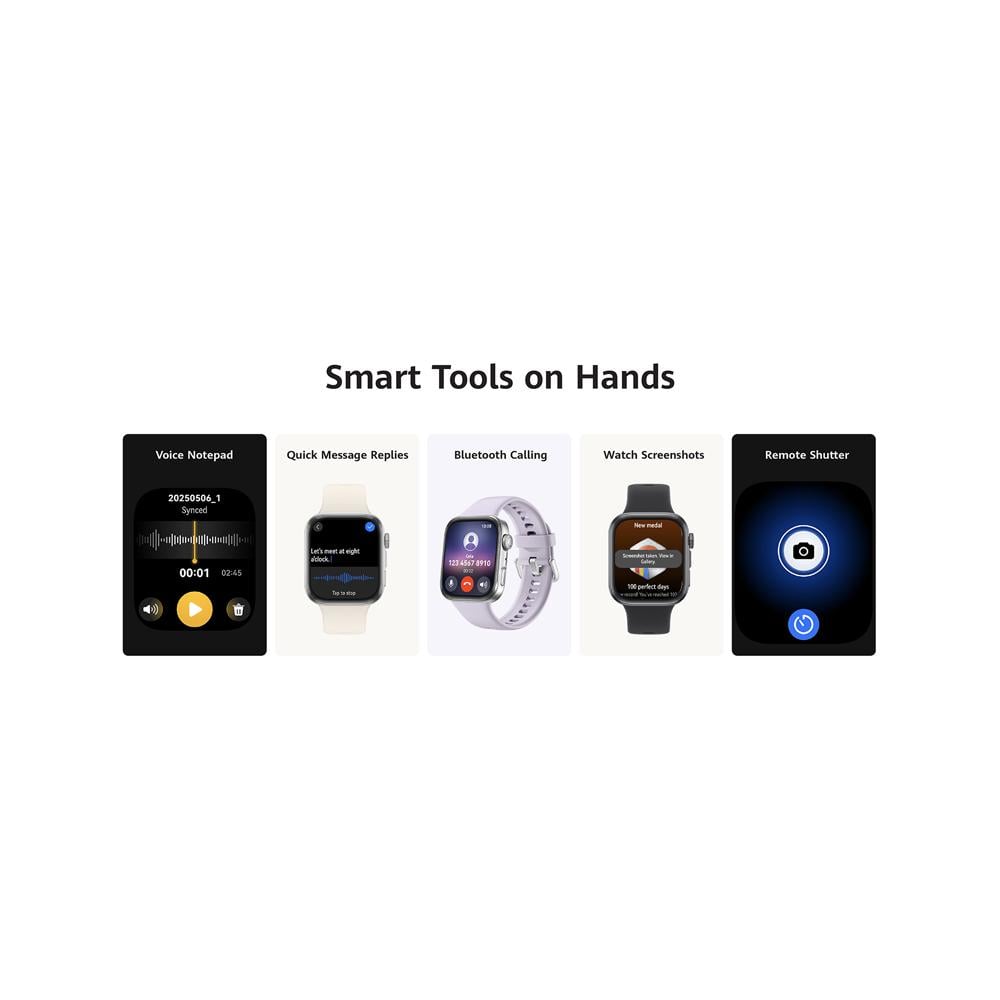 تدعم الساعة مجموعة من ميزات تتبع الصحة، بما في ذلك مراقبة معدل ضربات القلب، ومستوى الأوكسجين في الدم (SpO₂)، ومراقبة النوم، والتوتر، والدورة الشهرية، مما يساعدك على متابعة صحتك بشكل دقيق.