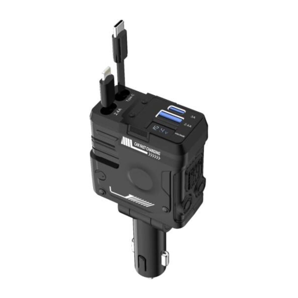 • شاحن قابل للسحب بتصميم 4 في 1 مع كابلات Lightning وType-C مدمجة، بالإضافة إلى منفذ USB-A إضافي للحصول على أقصى قدر من مرونة الشحن.