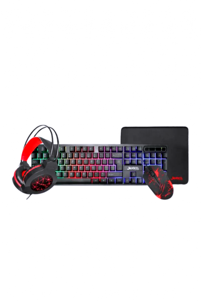 طقم الألعاب JEDEL 4X1 هو مجموعة احترافية متكاملة تتضمن كيبورد وماوس وسماعة وماوس باد، مصممة خصيصًا لمنح اللاعبين تجربة لعب غامرة مع إضاءة خلفية مذهلة وأداء عالي الاستجابة.