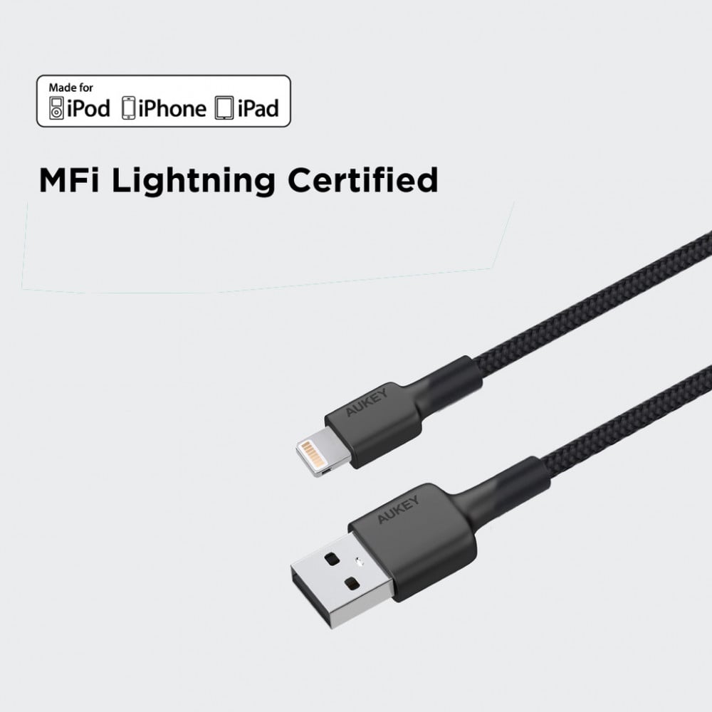 كيبل أوكي شحن و مزامنة لايتنينق مضفر نايلون 90 سم - أسود