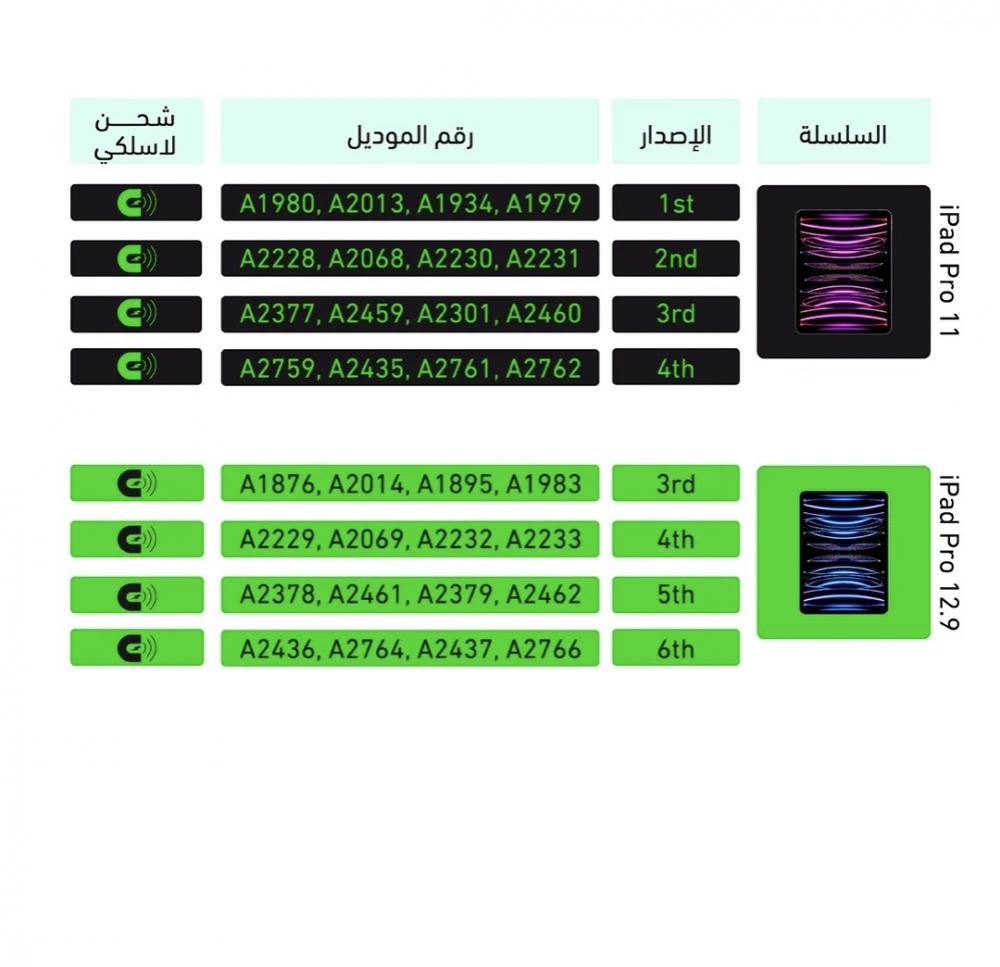 • يدعم ايباد ( الجيل التاسع - الجيل العاشر - الجيل 11 (A16 ) )