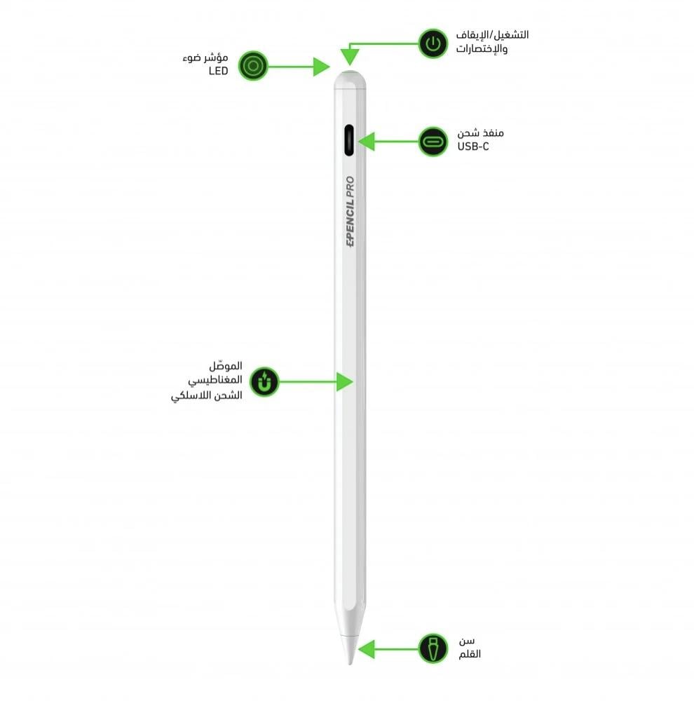 يأتي بتصميم مريح لليد ووزن خفيف، يمنحك مرونة أكبر أثناء الاستخدام. يُمكن استخدام EPencil Pro لمدة تصل حتى 11 ساعة متواصلة بشحن كامل، مع إمكانية شحنه لاسلكيًا وسلكيًا.