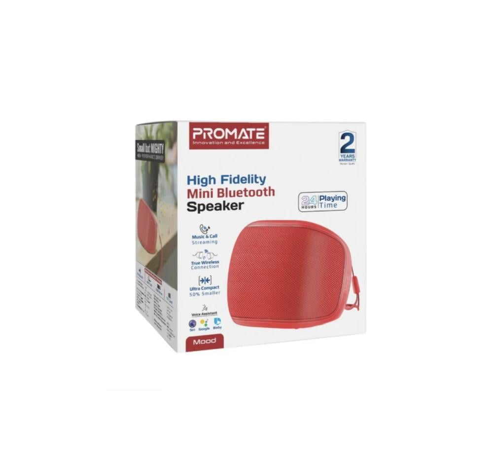 مكبر الصوت Mood يقدم جودة صوت ممتازة مع قدرة 5 واط: مما يجسد استجابة صوت جهير غنية وجودة صوت استثنائية. يخلق هذا التصميم التجربة الاستماعية الديناميكية والغامرة التي تحلم بها. سواء كنت تستمتع بالنغمات العميقة والغنية للجهير أو الأصوات العالية الواضحة، يضمن Mood تقديم رحلة صوتية تأسر حواسك وتجعلك تغمر في الصوت بشكل مذهل.