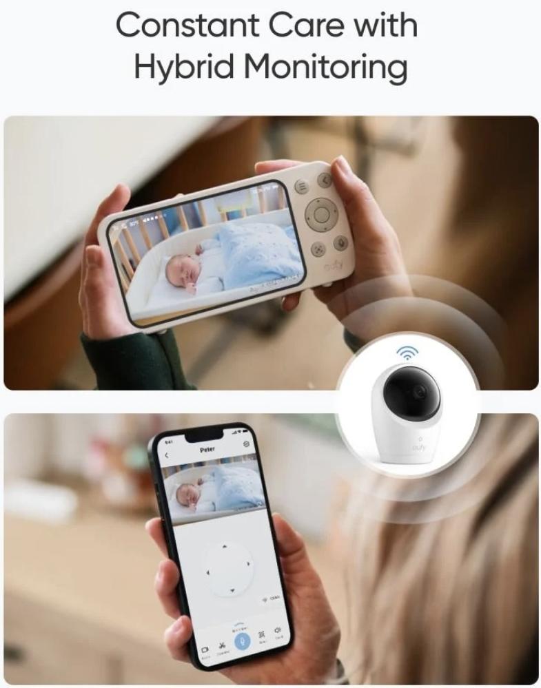 عناية مستمرة مع مراقبة هجينة: تحقق من طفلك من أي مكان في المنزل، مع أو بدون واي فاي. سواء كنت في العمل أو مسافرًا، ابق على اتصال من خلال التطبيق وشارك الوصول مع ما يصل إلى 5 أفراد من العائلة للحصول على دعم إضافي.